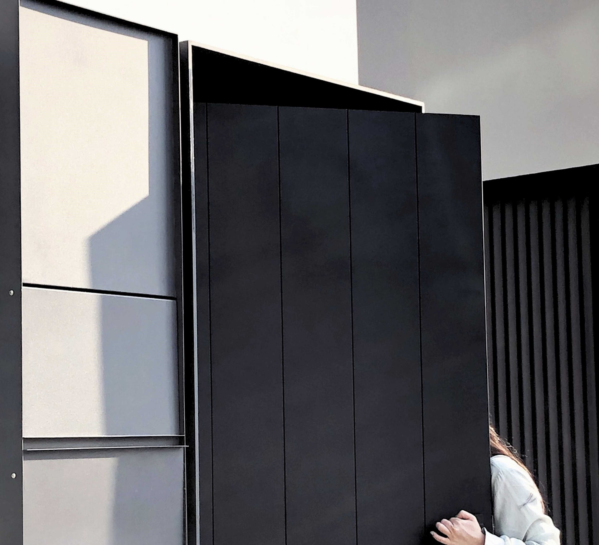 ประตูรั้วเล็กสำหรับคนเข้า-ออกหน้าบ้าน ใช้วัสดุเหล็กให้มีความแข็งแรงสูง และมีรูปแบบสไตล์ Modern Minimal และยังสอดรับกับตัว Parcel Dropbox รุ่น NOVA ด้วยการประกอบแบบ Modular System